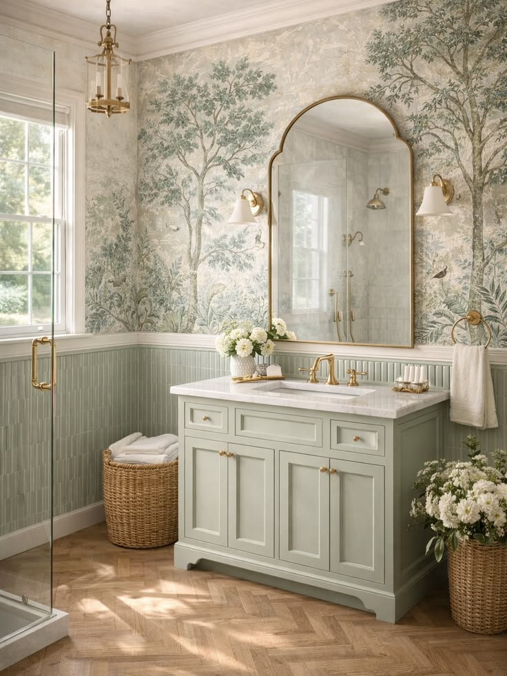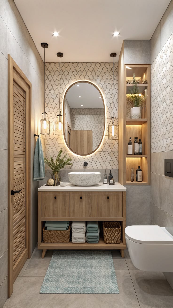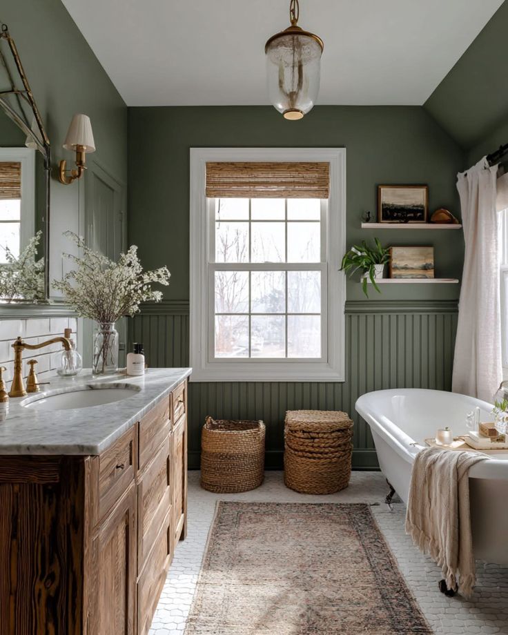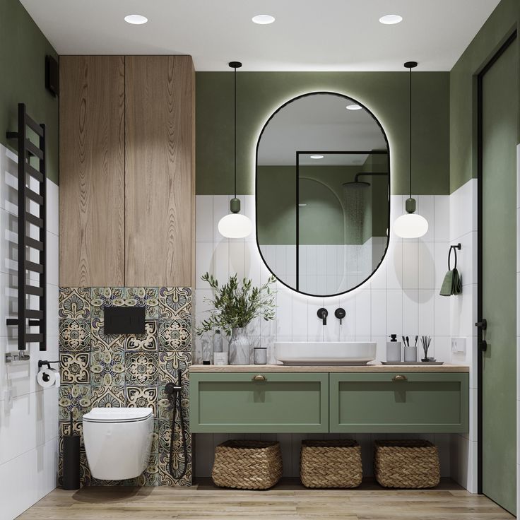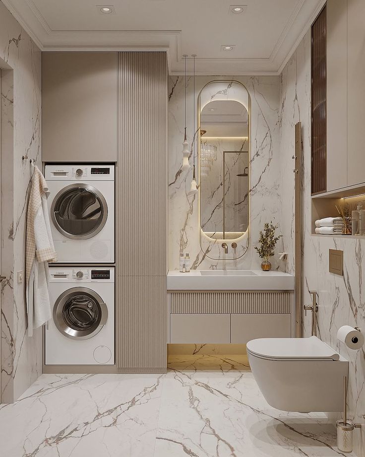 Что отличает такую ванную? Пожалуй, обилие красивых текстур, подобранной плитки, фурнитуры и конечно же мебели! Вдохновитесь для создания ванной комнаты мечты