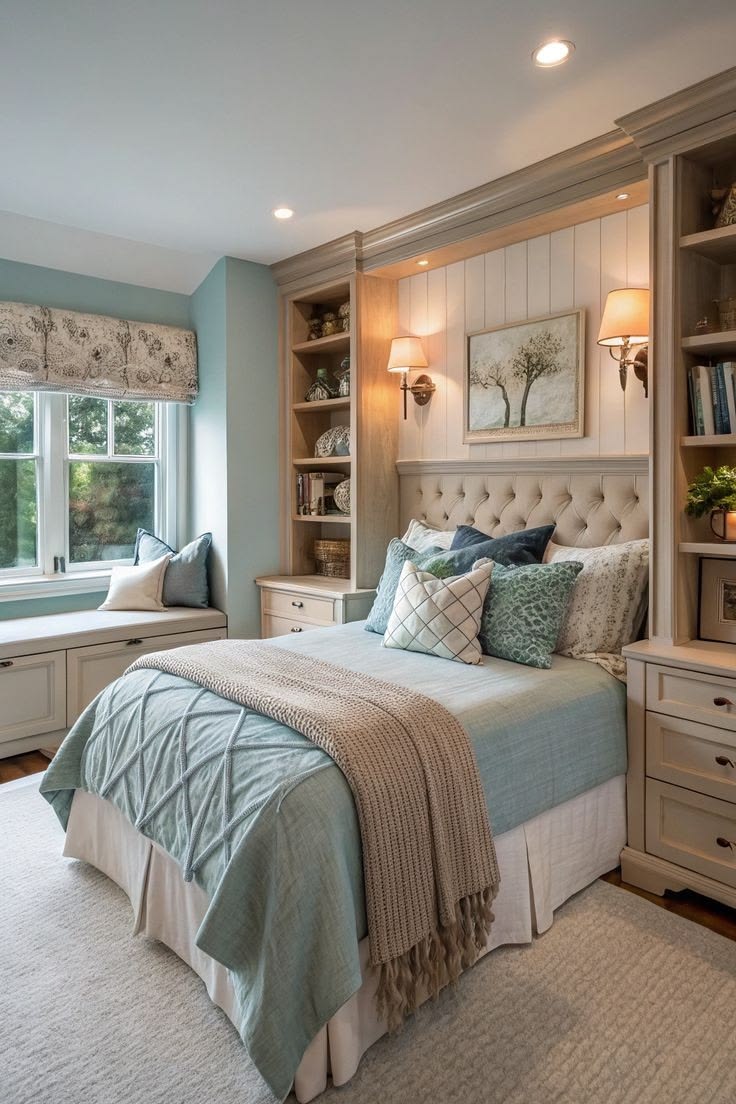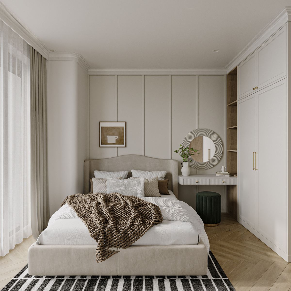 Мягкий текстиль, воздушная кровать и шкафы, хранящие самые красивые и приятные вещи. Организуйте пространство спальни под свои нужды