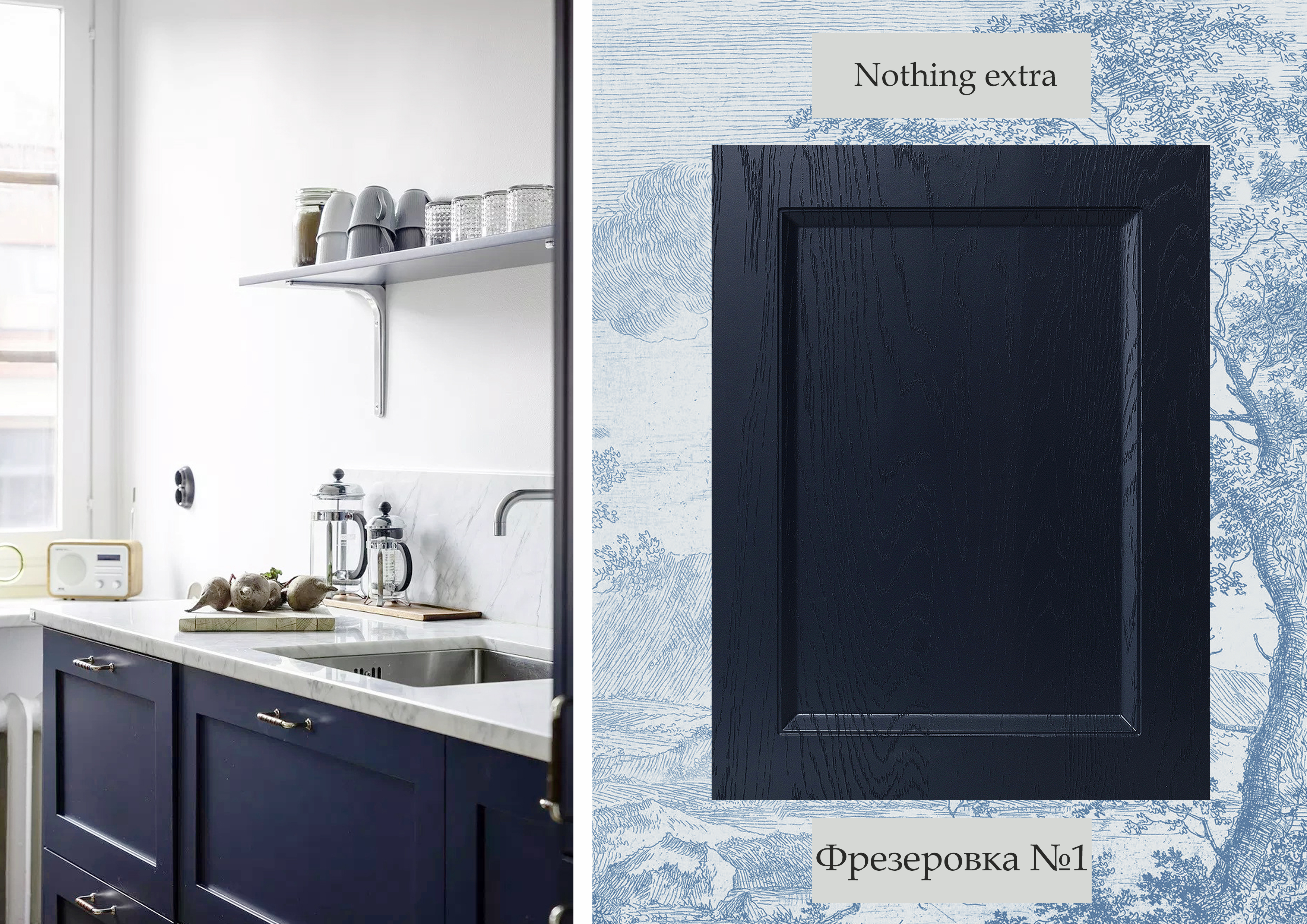- Использование простых филенок (фрезеровок) для фасадов.